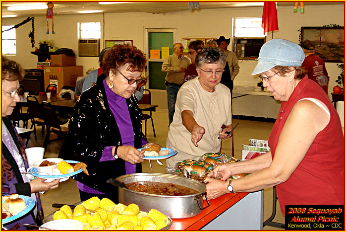 2k8_picnic-03.JPG Polly Springwater helps Waunita Sanders with some sweet potatos while Ruby Martin waits.
