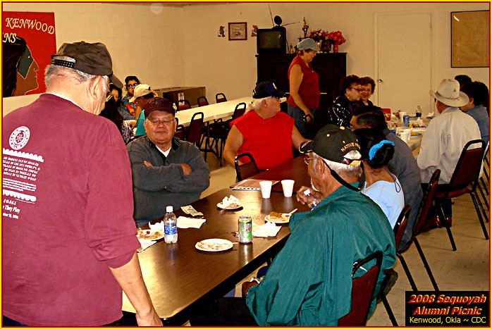 2k8_picnic-14.JPG Forman Ross has time to visit with D.B. Whitekiller and John Anderson.