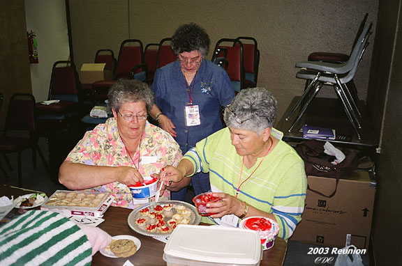 2k3reun02. Zelma Martin assists Charlotte and Mary L. Shipp