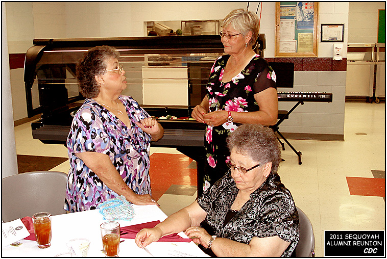2k11_Banq-10.JPG Alecia Davis chats with Roberta while Nannie Sue Hummingbird checks the program.